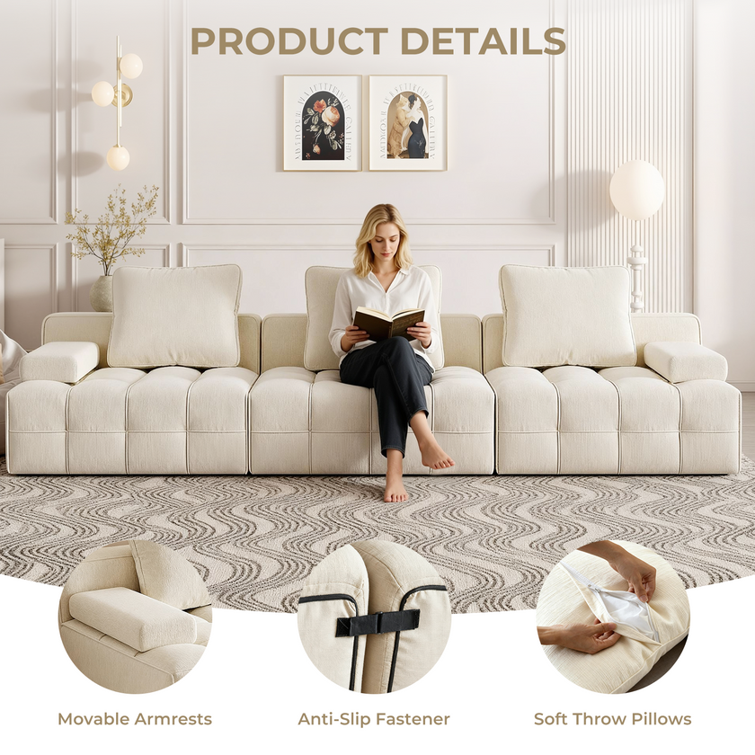 Lawrence Boneless Sofa for Living Room Bedroom and Apartment, Ultra-Soft Chenille Fabric, No Assembly Required, Chenille