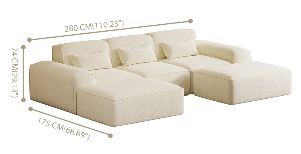 3-SEATS WITH TWO OTTOMANS DIMENSIONS